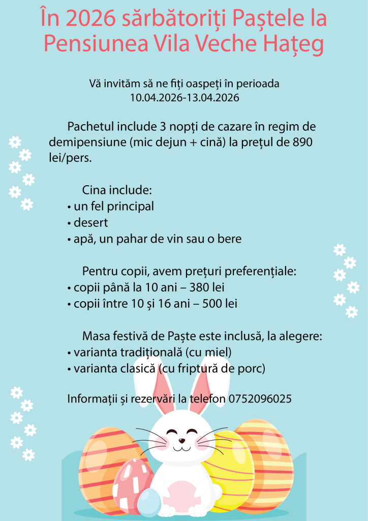 Pensiunea Vila Veche este situată într-o zonă centrală a orașului Hațeg, fiind în legatură directă cu toate punctele de interes din Țara Hațegului. Pensiunea vine cu un pachet generos de servicii, oferind sub aceeași emblemă a eleganței un restaurant, cazare și o cramă relaxantă cu evenimente deosebite saptămânal. Pensiunea folosește locația construcției din 1878, renovată și restaurată la cele mai înalte standarde.